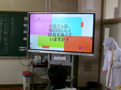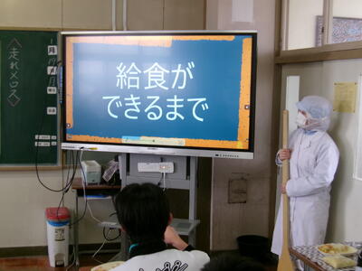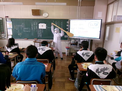本日の給食の時間に、本校栄養教諭による食育指導が行われました。