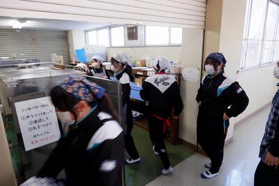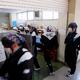 4校時が終了すると、各学級から給食当番が配膳室に集まってきます。