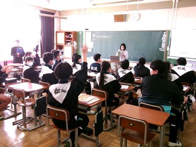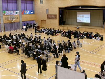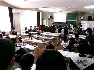 生徒会のメンバーも、自分たちが見学したときのことを思い出して、中学校のことが伝わるように工夫して発表することができました。