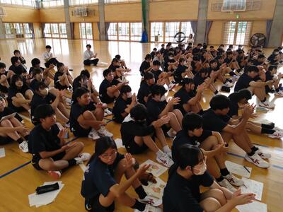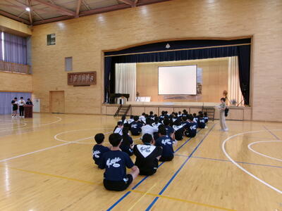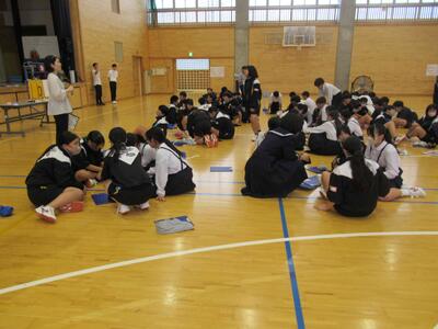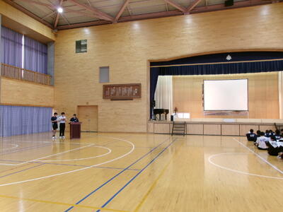 本日の5時間目に体育館にて、1年生の校外学習に向けての集会が行われました。