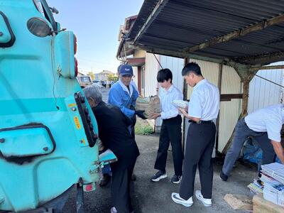 今朝、職員が古紙を回収車に積んでいるとき、3名の生徒が進んで手伝ってくれました。