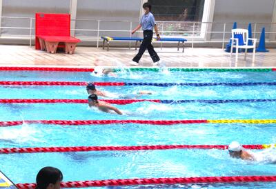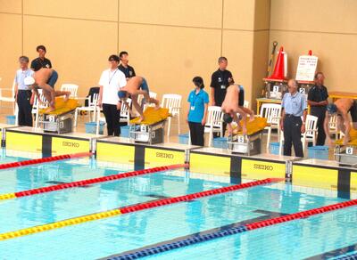 本校からは1年生男子1名が、100m・200mバタフライの2種目に出場し、どちらも第2位と好成績を収めました。特に、100mバタフライで大会新記録を樹立し素晴らしかったです。