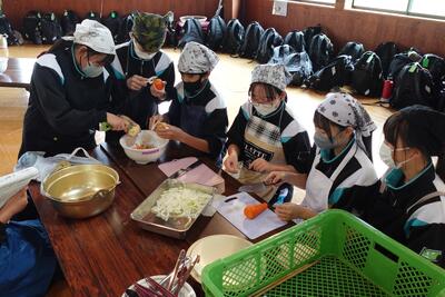 あいにくの強風のため、野外炊飯が急遽室内でのカレー調理になってしまいました。