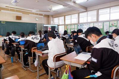 3年生の音楽の授業では、卒業式歌の練習が行われていました。