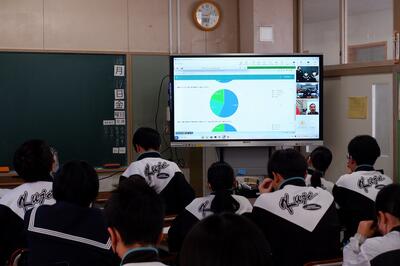 高見澤さんによるデモンストレーションを視聴し、全生徒によるアンケート投票を行い、その場で集約し結果発表を行いました。