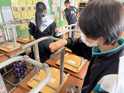 清掃強調週間で机やいすのほこり取りを行いました。