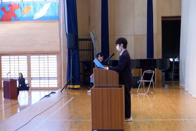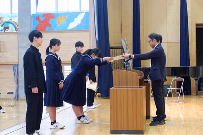 終業式では、しっかりとした態度で臨む姿に松風中生らしさを感じました。