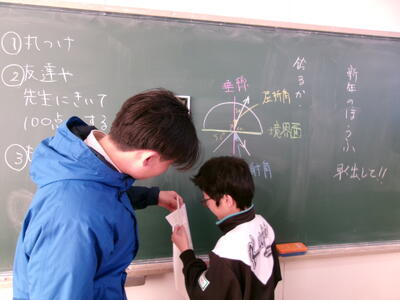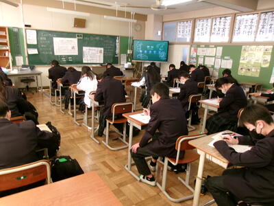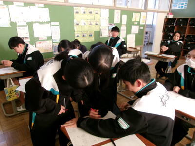 1年2組では、理科の授業で来週の学力診断テストの対策を行いました。