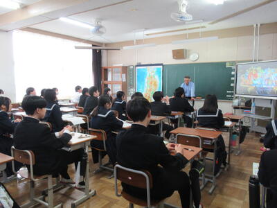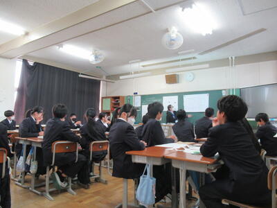 1学年では、人権教育が行われ、講師の先生の話をよく聞き、人権について考えを深めることができました。