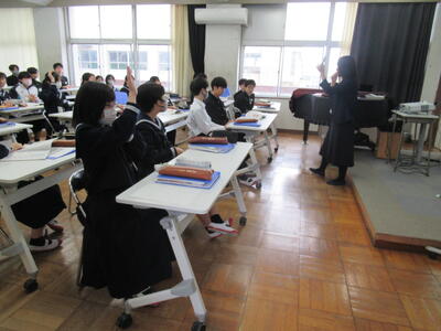 5時間目の授業参観では、生徒が積極的に活動している姿を、保護者の方々に見せることができました。