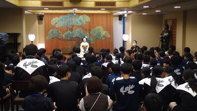 と、いうわけで、班別研修のようす(ごく一部)と、夜に行われた舞妓鑑賞のようすをお届けします。