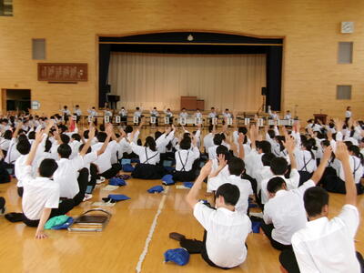 6月12日(木)の6時間目に生徒総会とJRC委員会による結団式が行われました。